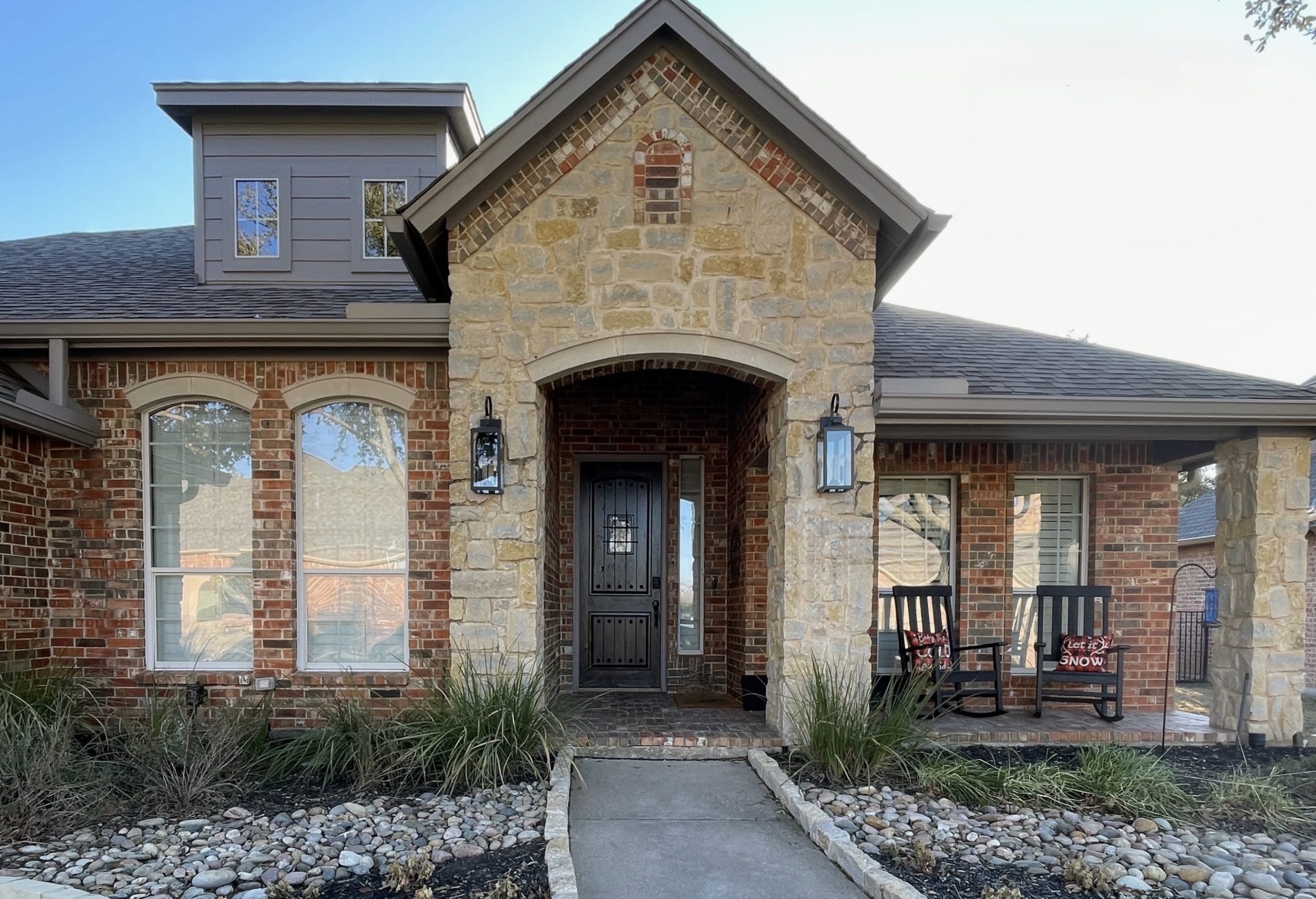 This elegant stone-and-brick home in Flower Mound received a full window transformation designed to modernize its curb appeal and improve energy efficiency. The homeowners wanted a cleaner, more sophisticated look that complemented their natural stone exterior and dark trim accents.
